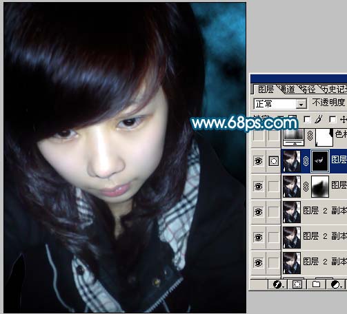 8、新建一个图层,盖印图层,把图层混合模式改为“正片叠底”,加上图层蒙版只保留人物头发部分,其它部分用黑色画笔擦掉。