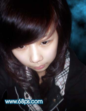 12、选择加深工具把人物头发周围涂暗一点,效果如图