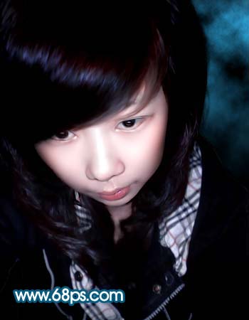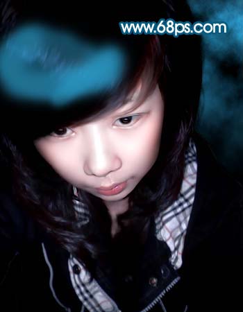 14、新建一个图层,前景颜色设置为:#2996C2,把头发高光部分涂出来如图
