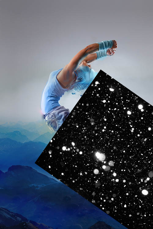 9、将雪花图片摆放在合适的位置,混合模式设为滤色,不透明度为40%。然后,创建一个矢量蒙版,将其反转,用画笔将需要的部分涂成白色。