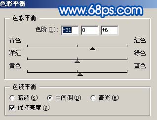 10、创建色彩平衡调整图层,参数设置如图,确定后只保留人物脸部,其它部分用黑色画笔擦掉
