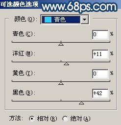 4、创建可选颜色调整图层,对青色进行调整,参数设置如图