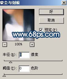 6、新建一个图层,盖印图层,执行:滤镜 > 杂色 > 蒙尘与划痕,参数设置如图