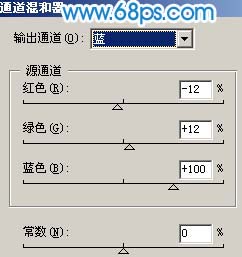 7、创建通道混合器调整图层,对蓝色通道进行调整,参数设置如图