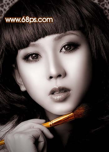 12、新建一个图层,盖印图层,选择减淡工具把人物脸部高光部分涂亮一点效果如图