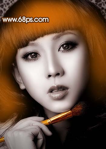 11、新建一个图层,前景颜色设置为:#D56B04,然后稍微把人物头发涂一下,如图