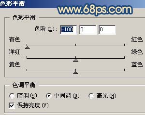 8、创建色彩平衡调整图层,参数设置如图12,确定后新建一个图层,盖印图层,执行:图像 > 应用图像,参数设置如图