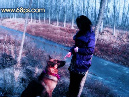 7、新建一个图层,按Ctrl + Alt + ~调出高光选区,填充颜色:#0003FA,然后把图层混合模式改为“柔光”。