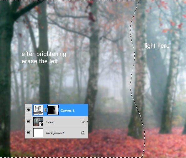 8、在这个曲线图层蒙版,用黑色软刷清除,以保持它右边的亮度。