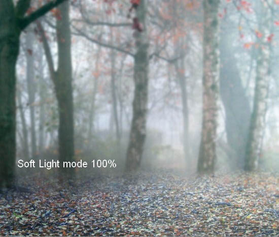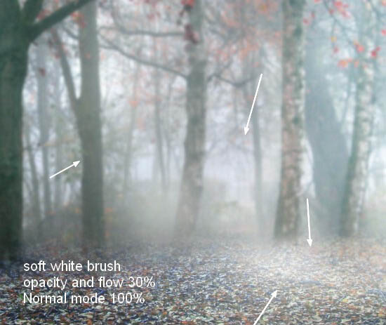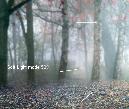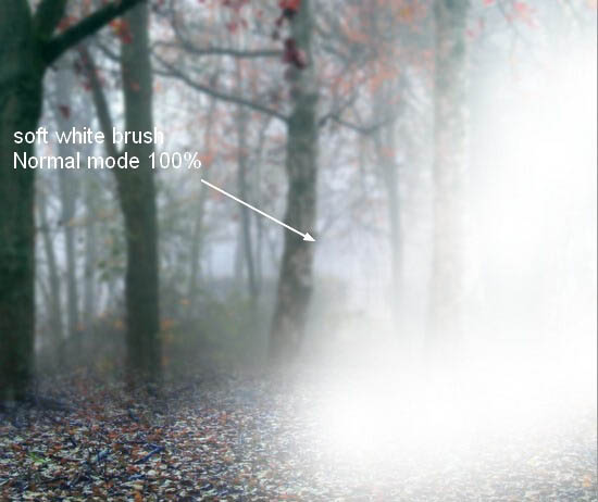 23、创建一个新层,将一些薄雾添加到整个场景,用白色的软笔刷油漆在图片的右边。改变这一层为50%柔光模式。