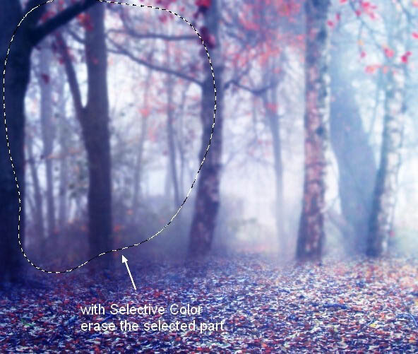 28、在这个图层蒙版,用黑色软笔刷,以减少对以下一些树木的影响。