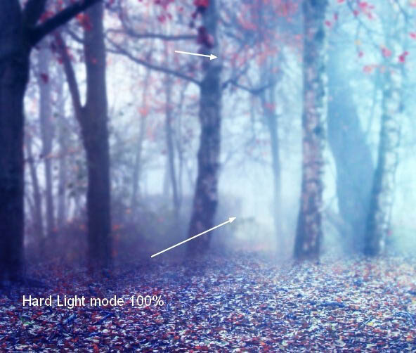 30、创建一个新图层,并使用相同的笔刷涂刷在地面上的右边。改变这个图层模式为强光30%。