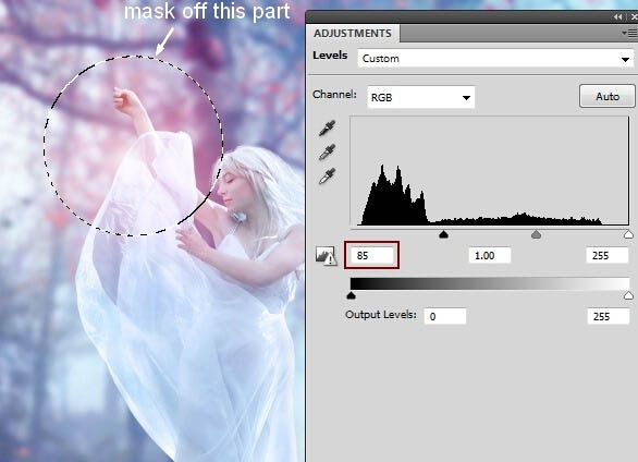 52、添加一个色阶调整图层,以减少光面积。擦除它的中心(在模特手臂上)。