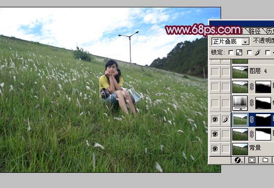 2、新建一个图层,按Ctrl + Alt + Shift + E盖印图层,图层混合模式改为“正片叠底”,加上图层蒙版,只保留天空部分,其它地方用黑色画笔擦掉。