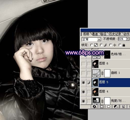 4、新建一个图层,盖印图层,按Ctrl + Shift + U去色,然后把图层不透明度改为:60%,效果如图