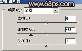 4、创建色相/饱和度调整图层,参数设置如图,确定后用黑色画笔把人物部分擦出来。