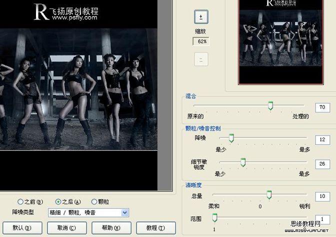 6、使用柯达磨皮插件去噪,数据如图:新建一个1000*1000的画布,填充黑色,把做好的图拖入画部对齐,具体样式看效果图,这个是用来做边框的,也是为以下磨皮步骤做铺垫的,柯达不支持小与550*550的图,所以要加个边,达到适合的大小,使用插件磨皮时,最好复制个图层出来,然后把磨地太过的地方擦出来就OK了!