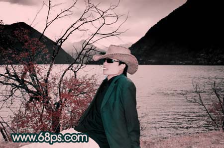 确定后用黑色画笔适当把人物及树部分擦出来,效果如图