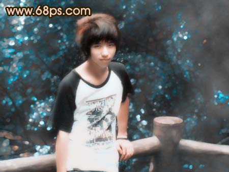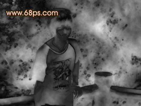 7、新建一个图层,盖印图层,按Ctrl + Shift + U取色,按Ctrl + I反相操作,效果如图8,然后把图层混合模式改为“变亮”,图层不透明度改为:60%,加上图层蒙版把人物及周围部分用黑色画笔擦掉,效果如图