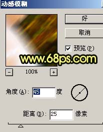 6、新建一个图层,按Ctrl + Alt + Shift + E盖印图层,然后把盖印后的图层命名为“星光”,然后把星光图层复制一层得到星光副本,对星光副本执行:滤镜 > 模糊 > 动感模糊,参数设置如图,确定后再对星光图层执行:滤镜 > 模糊 > 动感模糊,参数设置如图,不过把角度改成“-45”