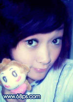 7、新建一个图层,盖印图层,选择涂抹工具,压力为:50%左右,然后把人物的头发稍微涂顺畅一点,再适当给人物磨下皮,大致效果如图
