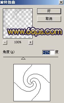4、执行:滤镜 > 扭曲 > 旋转扭曲,参数设置如图