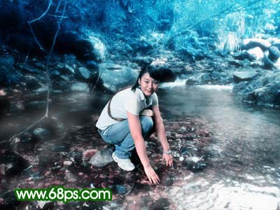 作者合成的非常细腻,很多细节的处理都值得借鉴,如水面倒影的处理部分,作者先制作好水波纹理,然后把倒影部分用置换和动感模糊滤镜特殊处理,
