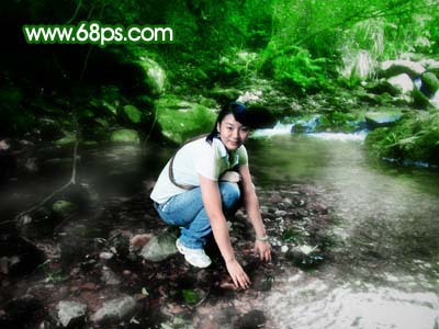 7、新建一个图层,盖印图层,用加深工具适当把周围加深一下,如图