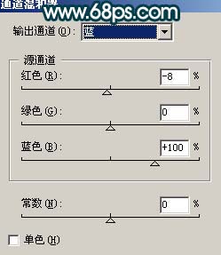 7、创建通道混合器调整图层,对蓝色通道进行调整,参数设置如图