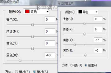 5、再创建可选颜色调整图层,对红、黑色调整,参数设置如下图,确定后把图层不透明度改为:40%左右。