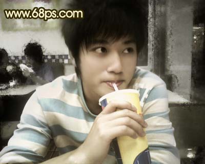 6、新建一个图层,执行:滤镜 > 模糊 > 特殊模糊,数值默认,确定后按Ctrl + Shift + U去色,图层混合模式改为“变暗”,加上图层蒙版,用黑色画笔把人物部分擦出来如图
