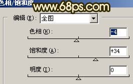 7、创建色相/饱和度调整图层,参数设置如图,确定后用黑色画笔把背景部分擦掉。