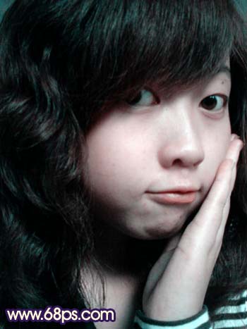 1、打开原图,按Ctrl + J把背景图层复制一层,然后点通道面板,选择绿色通道,按Ctrl + A全选,按Ctrl + C复制,点蓝色通道,按Ctrl + V粘贴,效果如图