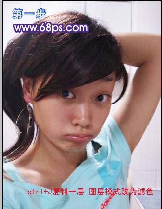 1、打开原图素材,按Ctrl + J把背景图层复制一层,然后把图层混合模式改为“滤色”。