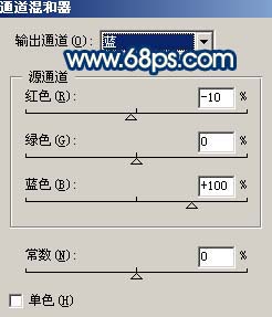 12、创建通道混合器调整图层,对蓝色通道进行调整,参数设置如图