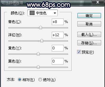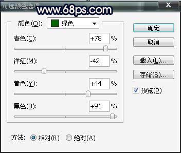 4、创建可选颜色调整图层,参数设置如下图。