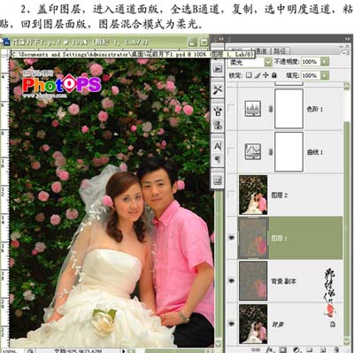 1、打开原图,选择菜单:图像 > 模式 > Lab颜色,把背景图层复制一层,进入通道面板,点a通道按Ctrl + A全选,按Ctrl + C复制,点b通道,按Ctrl + V粘贴,回到图层面板,把图层混合模式改为“柔光”。