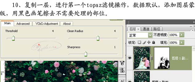 11、新建一个图层,盖印图层,用Topaz滤镜锐化一下,参数设置如下图,加上图层蒙版用黑色画笔擦去不需要处理的部位。