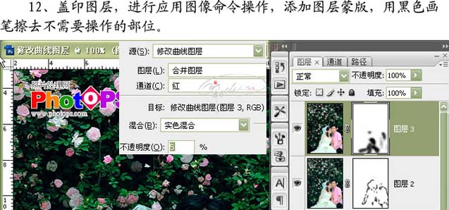 12、盖印图层,选择菜单:图像 > 应用图像,参数设置如下图,确定后加上图层蒙版,用黑色画笔擦去不需要操作的部位。