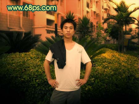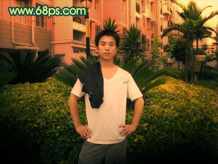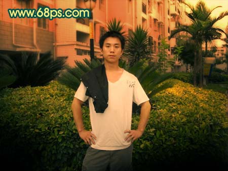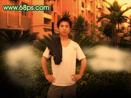 6、新建一个图层,前景颜色设置为:#FDCE8E,用画笔在植物的光照部位图一下,如图