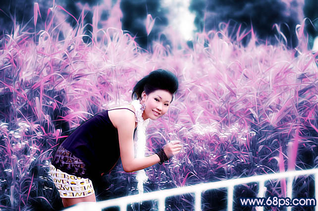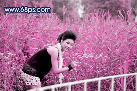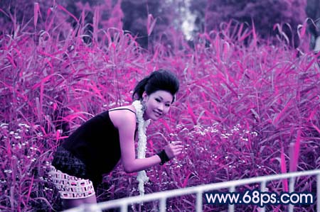 1、打开原图,新建一个图层,填充颜色:#E7038E,然后把图层混合模式改为“色相”,效果如图。