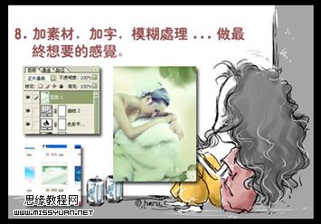 作者合成的非常细腻,很多细节的处理都值得借鉴,如水面倒影的处理部分,作者先制作好水波纹理,然后把倒影部分用置换和动感模糊滤镜特殊处理,
