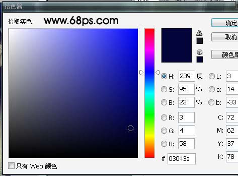 5、新建一个图层填充颜色:#03043a,然后把图层混合模式改为“排除”。