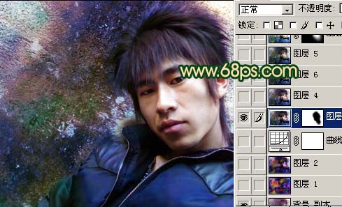 6、新建一个图层,盖印图层,加上图层蒙版用黑色画笔把人物头部擦出来,然后把下面的两个图层隐藏,图层参照如图