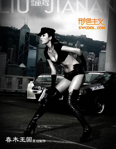 9、新建一个图层盖印图层,选择减淡工具提亮皮肤和车子,完成最终效果。