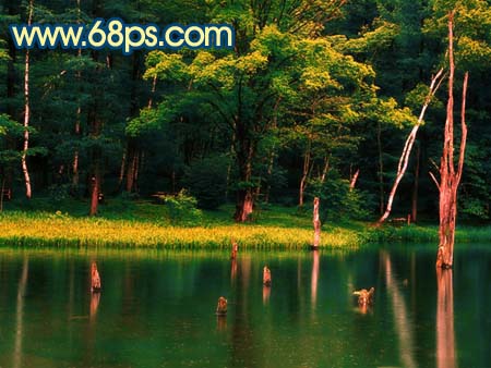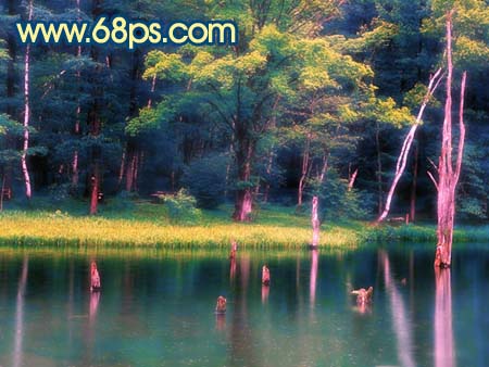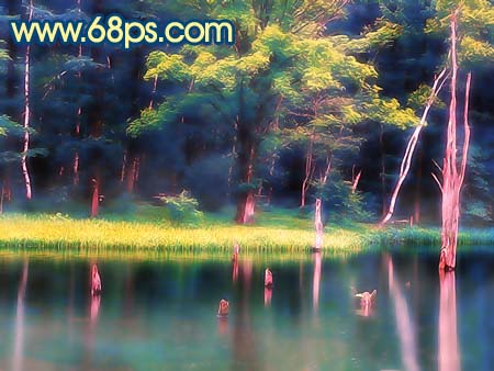 作者合成的非常细腻,很多细节的处理都值得借鉴,如水面倒影的处理部分,作者先制作好水波纹理,然后把倒影部分用置换和动感模糊滤镜特殊处理,