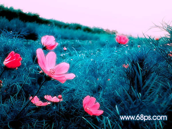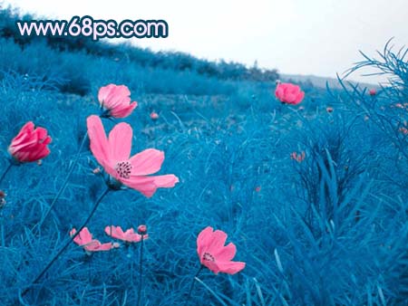 本教程介绍风景照片调色的一些技巧。调色的时候可以先用通道来整体换色,然后再用调色工具调成自己喜爱的颜色。需要注意好细节部分的修饰。