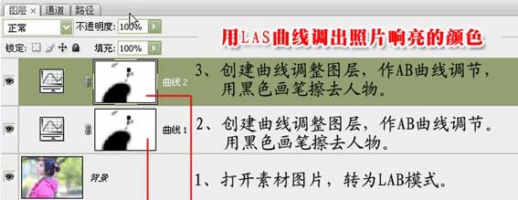 思路:在Lab模式下,使用曲线把照片的背景色彩调纯,并把有杂色的地方降噪处理。过程非常简单,但非常实用。