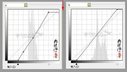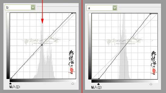 2、创建曲线调整图层,做AB曲线调整,参数设置如图,确定后用黑色画笔把人物部分擦出来。