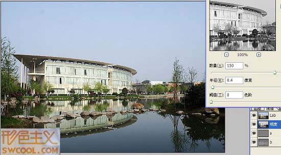 第二步:锐化图片,我是在LAB模式下对明度层进行锐化,数据如下图